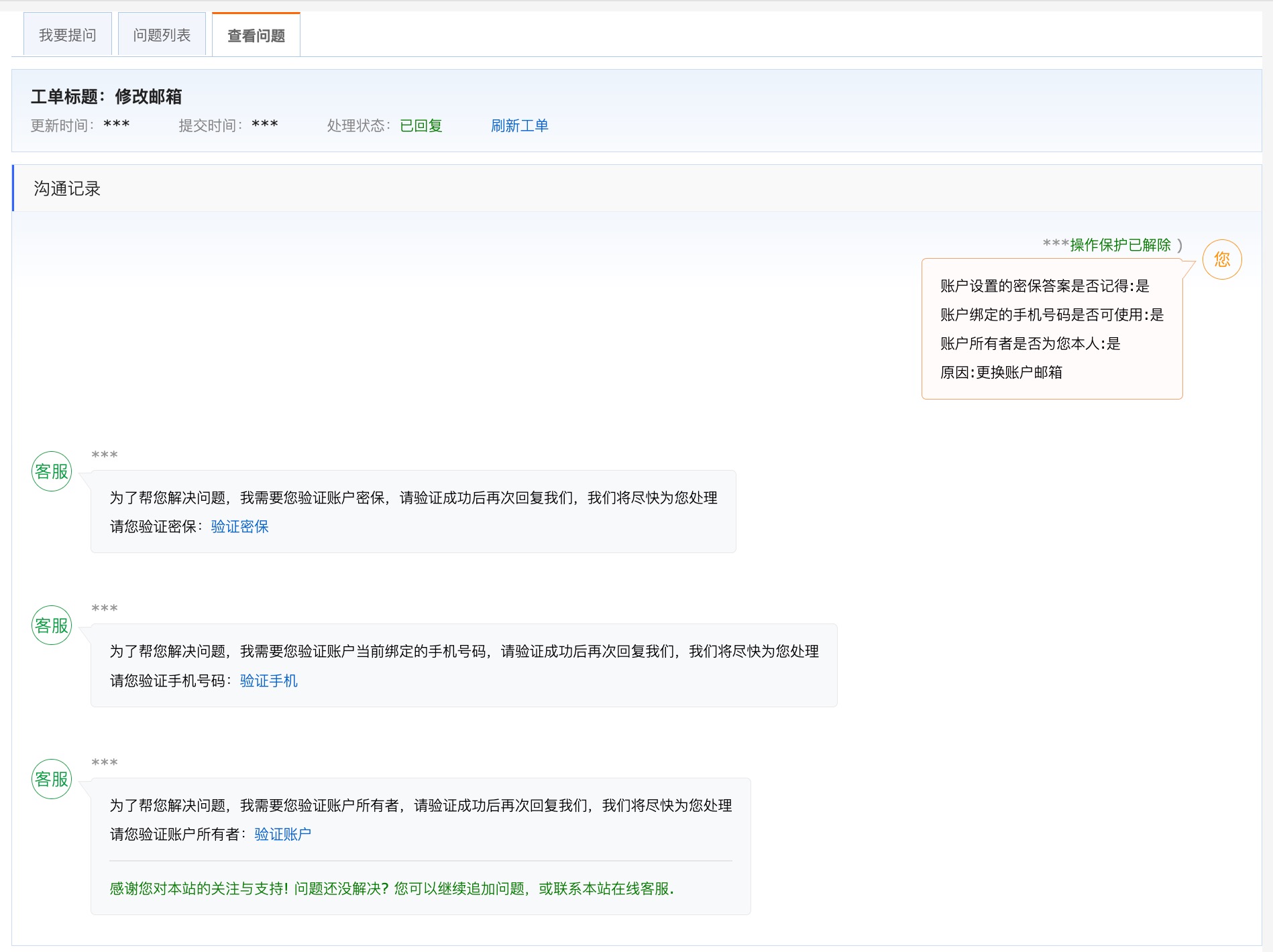 ⑤ 验证完成后请耐心等待专员审核处理并给您回复。